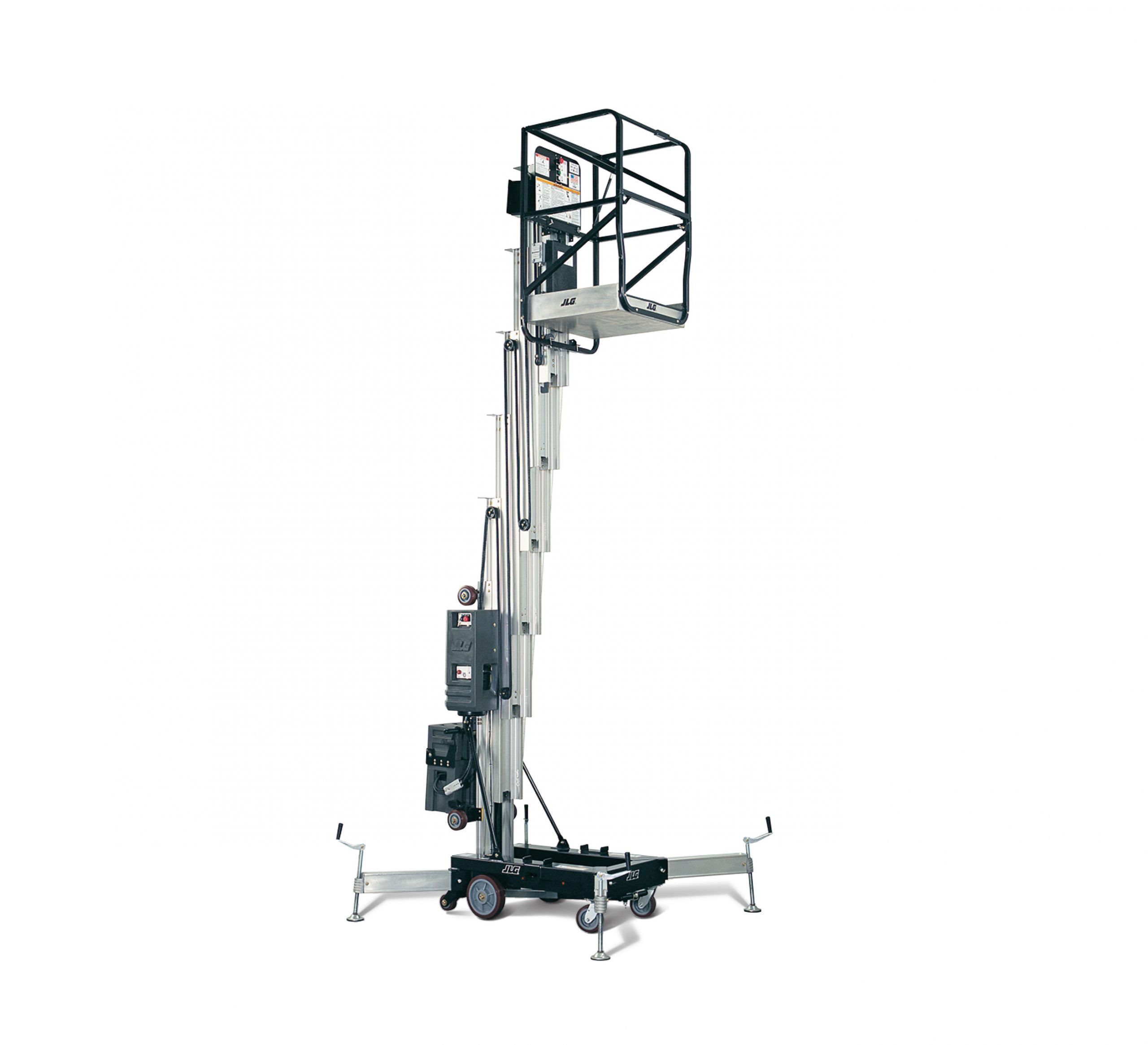 The JLG 25AM push around vertical mast Manlifts is built with operator comfort and stability in mind, with a six wheel design for an improved rotating maneuverability. The 25AM has an automatic charger and long battery cycles for more productivity.