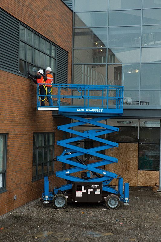 Reach great heights wih this GS4069 BE Rough Terrain Scissor Lifts, with a study platform that reaches 12.12m. Increase productivity and provide a safe elevated work platform for three operators on indoor projects and two operators in outdoor applications.