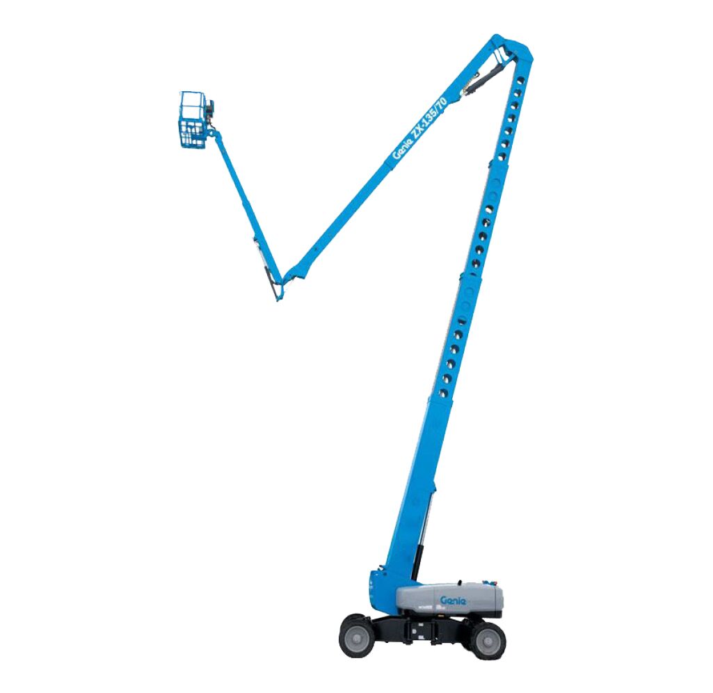 Getting you up, over and out the Genie ZX135/70 articulating Boom Lifts is Ideal for outdoor construction and industrial applications. Four-wheel drive and steer means that this articulating boom can handle rough terrain.